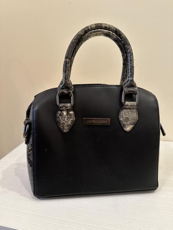 Черная сумка со вставками. В комплекте есть длинный ремешок. Стан - идеальный. Размер: длина - 23 см; высота - 20 см.
