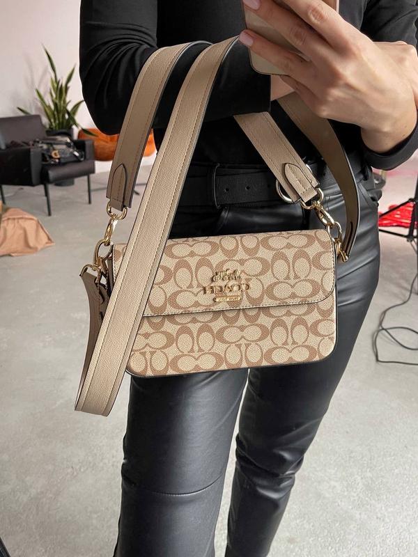Coach Shoulder Bag Beige Monogram Арт: 0083 Ціна: 1750 грн Розмір: 24 х 15 х 5,5 см Матеріал: еко шкіра Опис: Люкс якість! Сумка зроблена з еко шкіри. Логотип металевий. Всередині одне велике відділення, включає маленьку кишеньку. Текстильна підкладка червоного кольору. Шкіряна кишенька з нанесеним логотипом бренду та артикулом виробу. Має два шкіряних ремінця різної довжини, що приєднуються карабінами до сумки. Безкоштовновний комплект: брендова коробка + пакувальний папір.