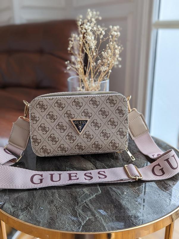 Сумочка Guess кросс-боди мини лого код черный 20297-1 коричневый 20297-2 белый+черный 20297-3 бежевый 20297-4 -Материал: эко-кожа - Два независимых отделения, по сережинке карман на белье. С обратной стороны мини карман открыт. - Размер: 21x13x7см - Ремешок 145см максимальный.
