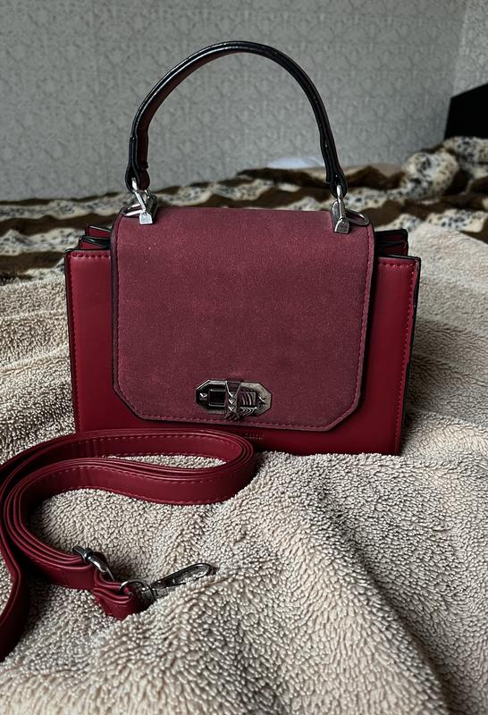 Сумка через плечо в бордовом цвете, отлично подойдет к вашему образу. Эко кожа+замша. Размеры: ширина 20 Длина -17; с ручкой- 25 см Глубина - 10 см