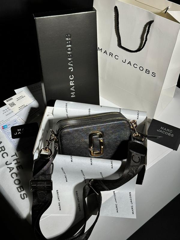 📐 Размер: 21 х 12.5 х 7 см 🧵 Материал: Эко Кожа 🔎 Описание: Сумка изготовлена из экокожи и текстиля, логотип металлический. Внутри два небольших отделения, разделенных между собой стенкой из экокожи. На задней стенке сумки есть небольшой кармашек. Ремешок Marc Jacobs на карабинах, шириной 5 сантиметров и длиной от 63 до 105 сантиметров максимум. Комплектуется в брендированную коробку, бумагу и пыльник (при дополнительной плате можно приобрести фирменный пакет и документы).