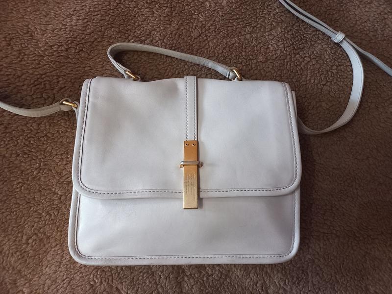 В хорошем состоянии с незначительными следами носки. Среднего размера, вместительная классическая сумочка. На одно большое отделение, кармашек и плоское отделение для документов или планшета. С тыльной стороны ещё одно внешнее отделение( застёгивается на магнитную кнопку). Дно- 23х7 Высота-21 Длина-30 Высота маленькой ручки-9 Длинная ручка регулируется. Присутствуют незначительные следы носки.