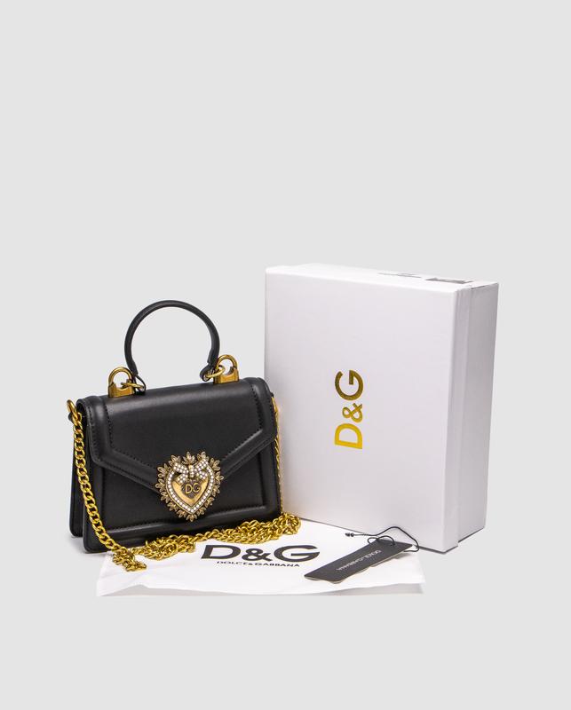 Арт: 991010 | 2800 грн | Размер: 19 х 13 х 5 cм | Материал: Кожа Сумка выполнена из гладкой кожи. Внутри одно основное отделение, также есть маленький карман. Подкладка из приятной на ощупь кожи. Фирменный акцент – объемная металлическая пряжка в виде сердца, украшенная монограммой DG. Отличная металлическая фурнитура со всеми брендовыми надписями. Закрывается сумка на магните-клапане. Есть короткая кожаная ручка для носки в руке, с фиксированной длиной. Также дополнительная длинная металлическая цепочка. Комплектуется в фирменной коробке крышка-дно и пыльнике.