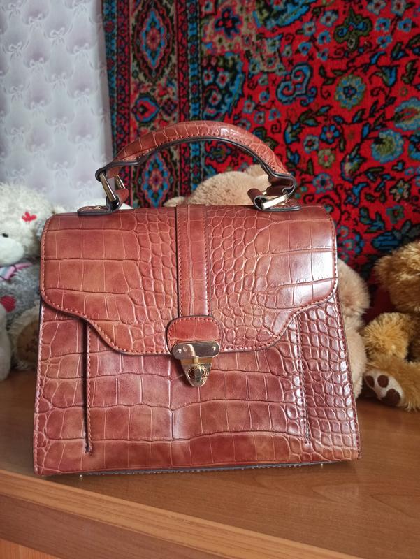 Трендовая сумка из искусственной кожи. Принт под крокодила. Небольшая, но очень вместительная. Имеет много отделений. В комплекте есть длинный ремешок