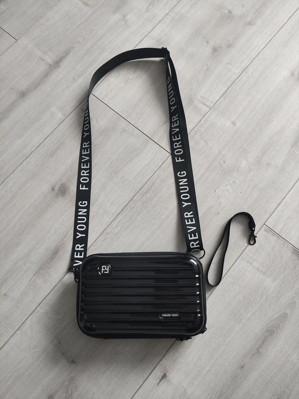 Черная пластиковая сумочка с сменными ремешками.Высота 11 см, ширина 18 см