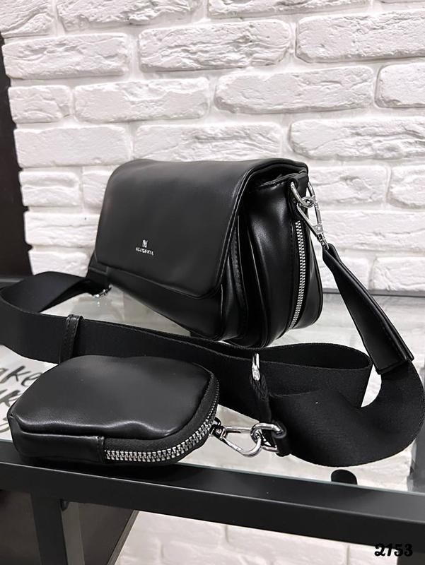 Код 2153 Только черный цвет Сумочки на широком ремне с дополнительным кошельком Имеет много отделов, снизу есть молния. Размер 25*16 см