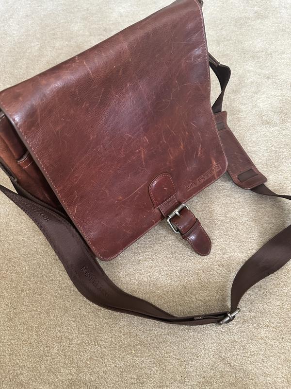 Кожаная сумка Roy Robson, в очень красивом состоянии, кожа толстая в винтажном стиле, спереди есть небольшие царапины, все остальное идеально. Два больших отделения всредены, боковый карман и несколько маленьких, очень содержимое и качественное.