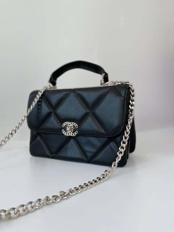 Название - Chanel, Черная Серая Фурнитура Артикул - 6012 • Размер : 26x17x9 • Материал - «Эко» кожа • Доп.информация - два больших отделения + один карман на замочке внутри + один карман сзади сумки, очень содержимое, ремешок черно/серебряный • Маленький ремешок/ручка - 9 см • Большой ремешок «через плечо» - 58 см • Комплектация - цветная бумага(тешью), наклейка + буклет + задор • Брендовая коробка 80+ гривен до заказа