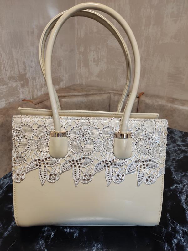 Шикарная стильная, брендовая сумка фирмы Solano, лаковая, из дорогих и качественных материалов, замки, круче, камней. Качество отличное. Ширина 31см, высота 28 см, длина ручек 55см, дно 11см.