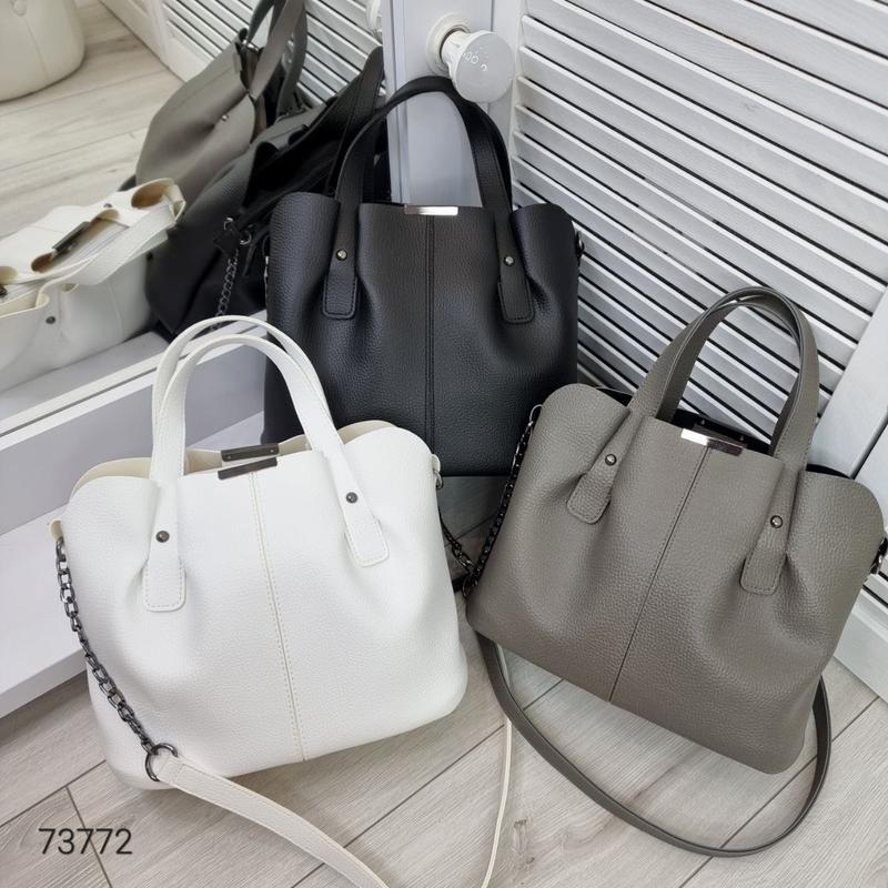 ✅ Очень красивая и популярная модель 👜👍‼️ ✅ ▶️ КОД: 73772 ФУРНИТУРА: никель РАЗМЕРЫ: Ширина по низу - 29,5 см, высота - 26 см, дно - 13,5 см + короткие ручки и длинный ремешок МАТЕРИАЛ: Кожа.зам, подкладка - плотная ткань СОСТАВ: Три отдела, средний отдел сверху закрывается на молнию, а два других отдела - на кнопку-магнит. Внутри есть 3 открытых кармана и 2 кармана на молнии.