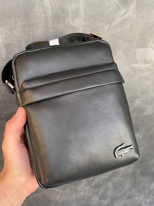 Мужская сумка Lacoste Артикул: СУ-051 ✅Бренд: Lacoste ✅Материал: искусственная кожа, текстиль ✅черный ✅ спереди карман на молнии, один основной отдел (внутри него два отделения, одно из них на молнии). ✅ Размер 22*17*7,5см 📸живые фото 📸 ———————————————————