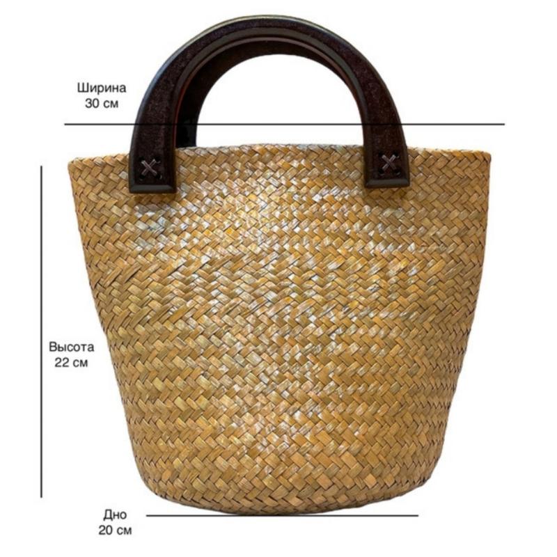 Соломенная сумка с деревянными ручками Май Тай от известного бренда Moco Bling в тайском стиле Летняя устойчивая сумка из соломы шикарно подойдет для летних городских прогулок как днем, так и на вечеринки. Дополнит легкие образы и фото у моря. Сумка имеет средний размер. В нее свободно поместится блокнот, планшет, очки с футляром, большой кошелек и даже бутылочка воды. Самое удобное, что имеет плетеная сумка - это твердый корпус всей сумки, который будет стоять, а не падать и сжиматься. Вам не нужно будет в ней долго искать вещи, все сразу будет на виду! Живые фото. Перед отправкой сумка проверяется. Тип: Городская сумка Материал: Солома + дерево + хлопок Размеры сумки: 22*30*20 см Диаметр: 20 см Ручки - 10 см Все размеры измерялись вручную, возможны различия в 2-4 см. Плетеная Сумка имеет ряд преимуществ: Твердий корпус Плетение очень качественное Снаружи покрыта лаком солома Запахов нет Внутри коричневая хлопковая подкладка На молнии через всю сумку Внутри 2 маленьких кармашка - один на молнии, второй нет