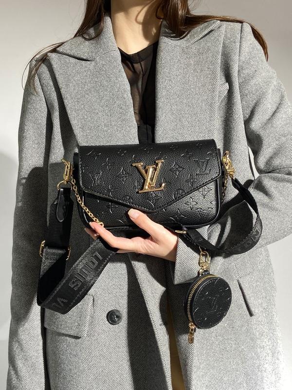 👜 Louis Vuitton Pochette Leather Black 📐 Размер: 21 х 13 х 8 см 🧵 Материал: Эко Кожа 🔎 Описание: Сумка изготовлена из эко кожи с фирменной канвой. Внутри одно отделение, также есть небольшой кармашек. Подкладка внутри сумки из приятного на ощупь бархатистого текстиля. Ремешок из текстиля, регулируемой длины. Также на ремешке есть небольшой круглый кошелек на молнии. Комплектуется в брендированной коробке и брендированной бумаге (за дополнительную плату можно приобрести фирменный пакет, пыльник и документы).