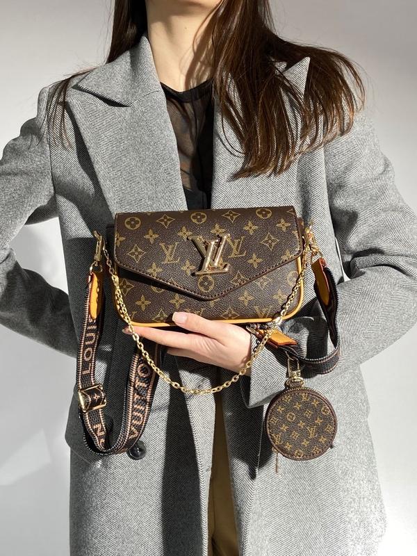 👜 Louis Vuitton Pochette Leather Brown 📐 Размер: 21 х 13 х 8 см 🧵 Материал: Эко Кожа 🔎 Описание: Сумка изготовлена из эко кожи с фирменной канвой. Внутри одно отделение, также есть небольшой кармашек. Подкладка внутри сумки из приятного на ощупь бархатистого текстиля. Ремешок из текстиля, регулируемой длины. Также на ремешке есть небольшой круглый кошелек на молнии. Комплектуется в брендированной коробке и брендированной бумаге (за дополнительную плату можно приобрести фирменный пакет, пыльник и документы).