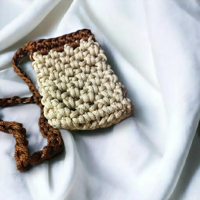 Мини сумочка для телефона, ручной работы Выполнена из полиефирного шнура Ширина: 10 см Высота: 18 см