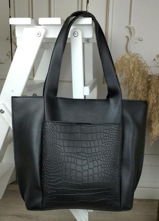 Це кохання з першого погляду 🔥Велика містка сумка. Вміщує формат А4♥️ Код: Д587 Ціна 700 грн Матеріал: Екошкіра. Підкладка -щільна тканина Розмір: ширина по дну сумки 29см, ширина вгорі сумки 40 см., Висота 31 см, дно 11см. Висота ручок 25 см. Особливості: спереду карман на магніті. Сумка закривається на блискавку, в середині відкрита кишеня та потайна кишеня на блискавці.