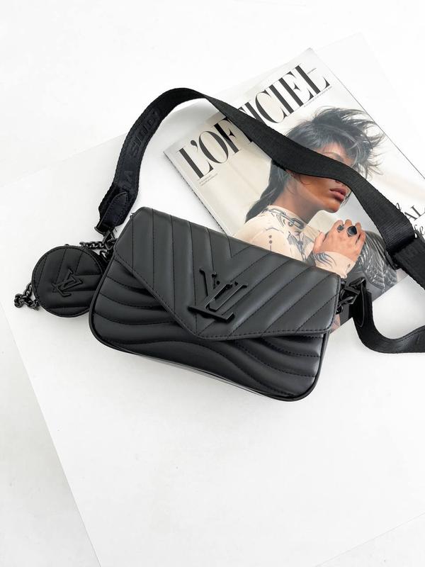 Сумка в стиле Louis Vuitton New Wave Multi Pochette Total Black Арт: 0113 Размер: 23 х 14 х 8 см Материал: эко кожа Описание: Люкс качество! Сумка сделана из приятной на ощупь гладкой эко кожи. Логотип – металлический. Внутри одно сплошное отделение с маленьким кармашком. Ремешок сумки регулируется, длина от 78 до 115 см, на нем есть небольшой кармашек круглой формы для разных мелочей. Также в комплекте идет цепочка, которую можно использовать как ремешок. Бесплатный комплект: брендовая коробка + упаковочная бумага. Платный комплект +180 грн: брендовый пакет, пыльник и набор документов.