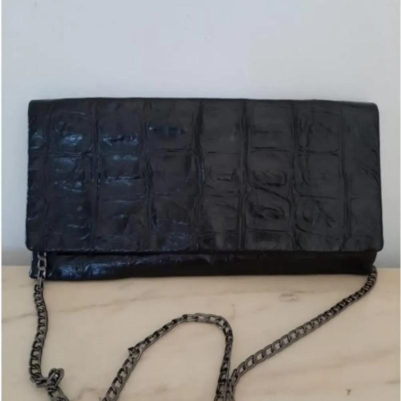 Сумка-клатч з натуральної шкіри в ідеальному стані. Дуже вмісткий. Є відділення для грошей, яке закривається на блискавку. Ланцюжок знімається і сумку можна використовувати як клатч. Бренд Etui Bags London. Заміри: довжина-30,5 см, висота-16 см.