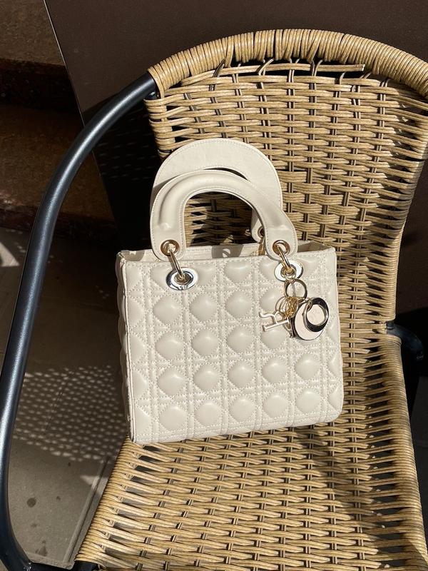 👜 Christian Dior D-Lite Big Cream Leather 📐 Размер: 25 х 20 х 12 см 🧵 Материал: Эко Кожа 🔎 Описание: Сумка выполнена из эко кожи с ромбовидной строчкой. Внутри одно большое отделение, есть небольшой карман на застежке. Подкладка внутри из плотного текстиля черного цвета. Закрывается внутреннее отделение благодаря капюшону из эко кожи. В комплекте есть золотистая цепочка, которая крепится на карабинах, но сумку можно носить и без ремешка. Комплектуются в не брендированных коробках.