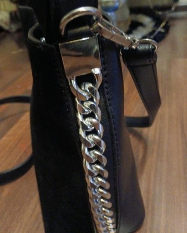 Сумка отличного качества, ручка снимается,меет 3 отделения +маленькие кармашки.размер 22/28см, длина ручек малая 34 см, большая регулируется до 150 см, состояние очень красивое в носке было мало.