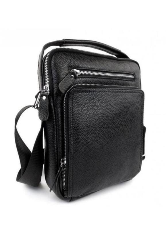 Мужская сумка выполнена из качественной натуральной кожи с применением надежной металлической фурнитуры. Сумка имеет практичный регулируемый плечевой ремень. Кроме этого, особой функциональности этой офисной сумке добавляет ее ручка. Сумка с ручкой имеет большое количество всевозможных отделений и карманов, которые закрываются при помощи молнии. Мужская кожаная сумка имеет одно отделение, которое закрывается при помощи молнии. На тыльной стороне указанной сумки расположен карман, который также закрывается на молнию. На своей лицевой части, эта сумка с ручкой из натуральной кожи имеет два дополнительных кармана, которые так же закрываются с помощью молний. Размер 21 х 26,5 х 7 см