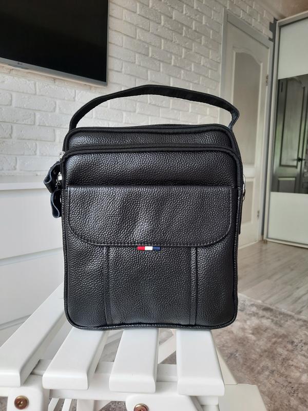 Ширина 26см, висота 22см, глибина 7см Виконана із натуральної шкіри. Класна якість. 2 відділенняі долатково карманчики ззовні і всередині.