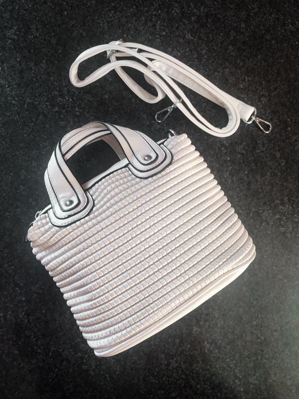 из искусственной кожи, цвет ivory, небольшая, замеры 29 см ширина, высота 18 см