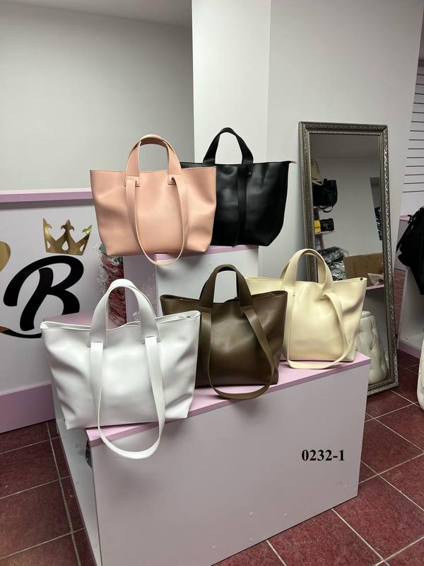 ❤️Є накладний платіж без передоплати,або повна оплата. Код 0232-1. Гладка екошкіра . Туреччина Ширина по дну 34 см. Ширина вгорі 44 см. Висота 30 см. Дно 15 см. Висота довгих ручок 30 см. Одне відділення на блискавці, поділене навпіл перегородкою на блискавці. Всередині відкрита кишеня і кишеня на блискавці. З боків сумки карабіни для затягування куточків всередину. Над основною блискавкою кнопка. На зворотному боці кишеня на блискавці