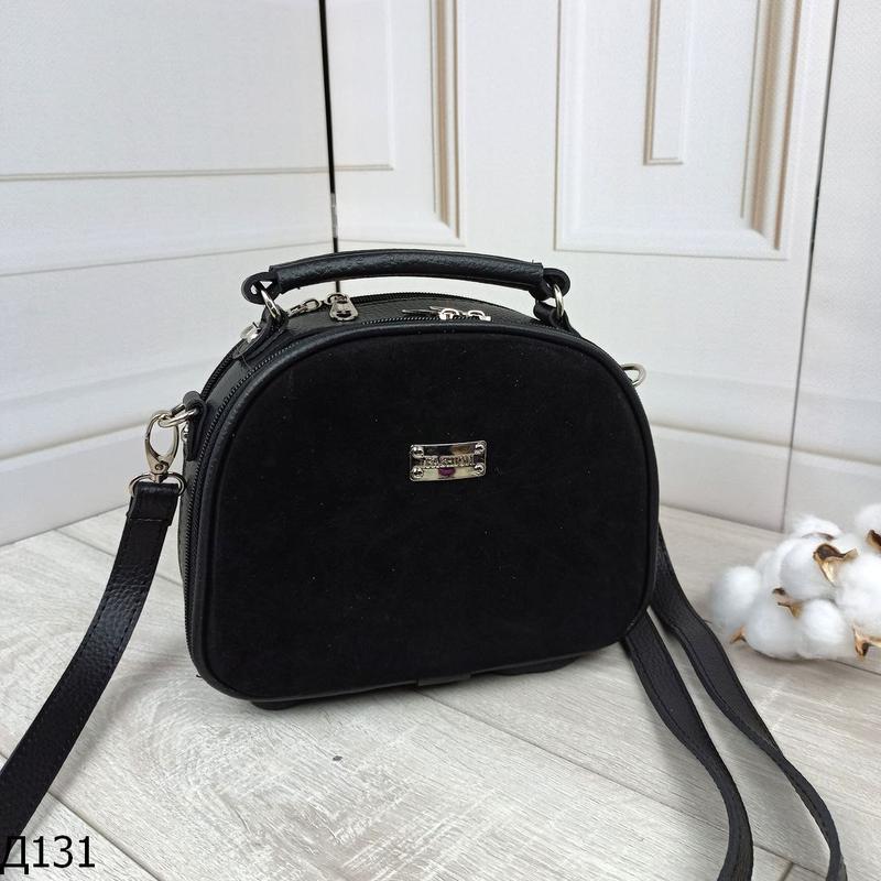 Шикарна сумочка ♥️😍 Код Д131 ☑️Размер: Ширина внизу - 23 см ширина вверху - 19 см, высота - 17,5 см, дно - 10 см, длина плечевого ремешка регулируется до 150 см ☑️Материал: натуральная замша/кож зам,фурнитура-серебро Качество отличное. Плотная подкладка. Клатч отлично держит форму. На фото он пуст. Особенности: Одно отделение на двух молниях, разделенное пополам карманом-перегородкой на молнии. Внутри карман для телефона и внутренний карман на молнии. С тыльной стороны карман на молнии