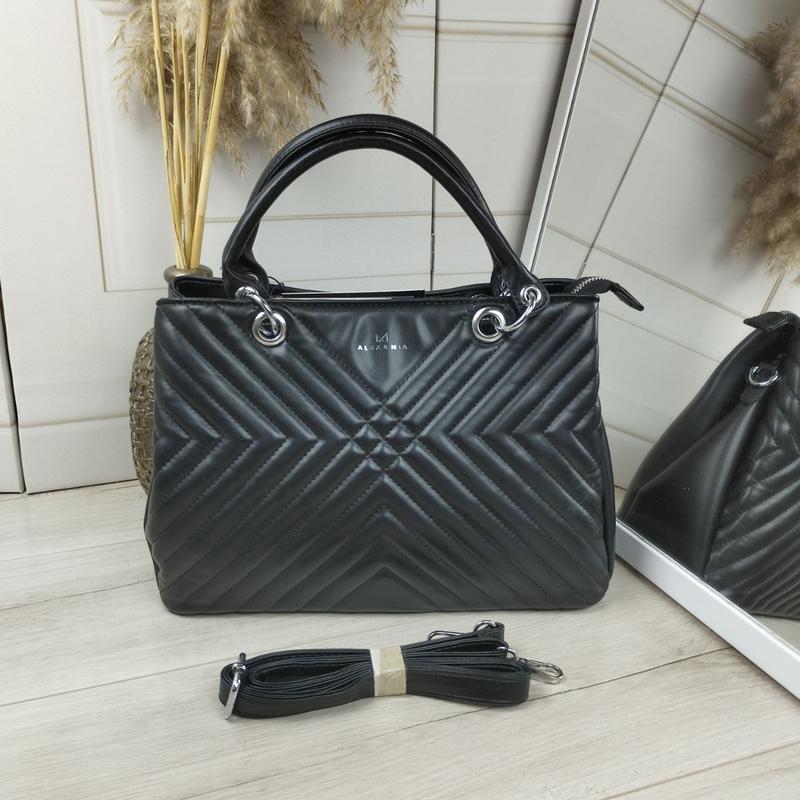 Очень стильная сумочка ♥️ Код: Д596 ✅ Материал: эко кожа премиум качества 🔥 Подкладка -плотная ткань Размер: ширина внизу сумки 31см, высота 23 см, дно 12 см. Высота ручек 13 см. Длина ремня регулируется до 112 см. Сумка закрывается на молнию, внутри три отделения, открытый карман и потайной карман на молнии. На обратной стороне карман на молнии. Сумочка красиво продолжается форму