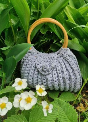 Очень красивая сумочка, ручной работы. Сделанная из трикотажной ленты, оздоровление деревянные ручки.