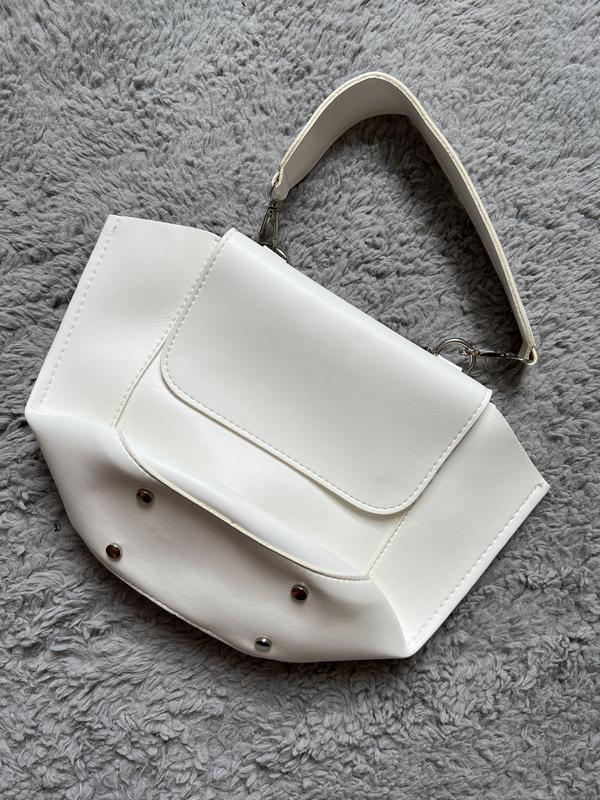 Белая сумка Глибина 22 см. Ширина 39 см. Есть ручка через плечо Взади малый дефект