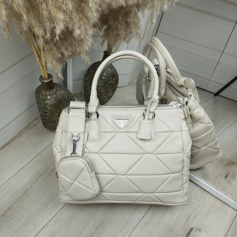 Очень стильная новинка на три отделения из экокожи ПРЕМИУМ качества 🔥 🔥 🔥 Вмещает формат А4 ♥️ Код: Д599 Цена 1000 грн Размер: ширина по низу-33 см, высота-23 см, дно-14 см. Высота ручек 15 см, широкий плечевой ремешок регулируется до 130 см. Маленький кошелек 8*11 см. Материал: Эко кожа премиум качества, очень мягкая и приятная на ощупь. Подкладка- плотная ткань Особенности: три отделения, закрываются на молнию. По бокам есть кнопочки, витрив их сумочка становится шире. Внутри открытый карман и потайной карман на молнии. С тыльной стороны - карман на молнии.