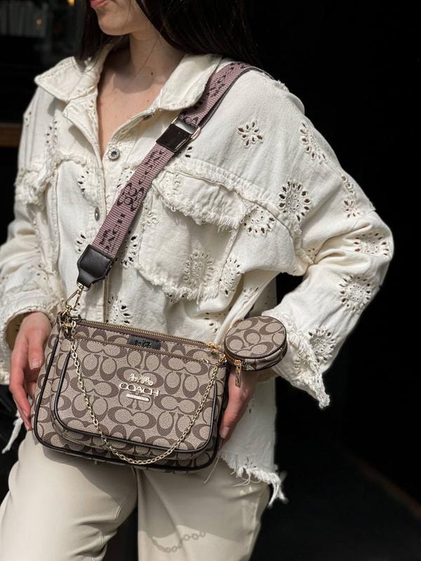 В наличии размер: 23х16х5 см (Сумка изготовлена из эко/кожи. Внутренняя подкладка из брендированного текстиля. Сумка состоит из двух частей, в каждой из которых одно большое отделение. Ремешок на карабинах, шириной 5 сантиметров и длиной от 63 до 105 сантиметров. Также на ремешке есть небольшой кошелек) Комплектация: Брендовая коробка📦