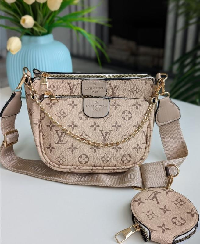 Сумка клатч Louis Vuitton 3в1 бежевий Розмір великого клатча 22х15х5 см Розмір меншого 17х12х5 см. Діаметр круглої сумочки 9 см. У комплекті довгий ремінь, максимальна довжина якого 120 см. Перед оформленням замовлення Будь ласка уточнюйте наявність. Асортимент сумок, рюкзаків складається з 600 позицій поповнюється щодня Стежте за новинками підписуйтесь щоб не пропустити знижки Накладний платіж з мінімальної передоплати