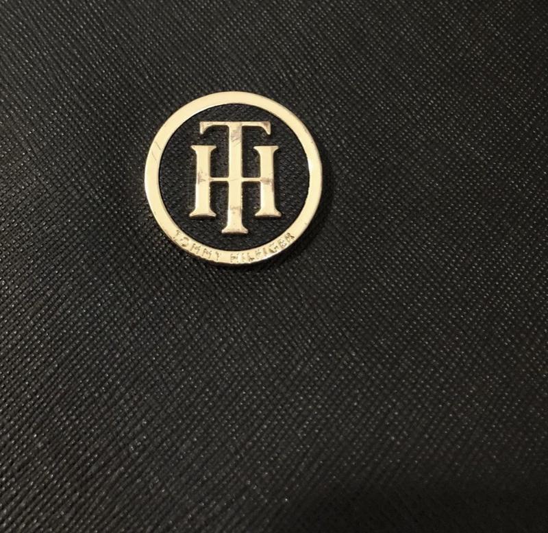 Фирменная сумка-тоут Tommy Hilfiger фактурная , чёрного цвета, ширина-42см, высота-24см., шикарно носить как на плече,так и в руке. Длинного ремешка нет в комплекте, но он и не уместен для этой модели. Из дефектов: с внутренней стороны ручек небольшие перегибы , которые образовались при носке сумки. Визуально их не видно, в цене это учла.