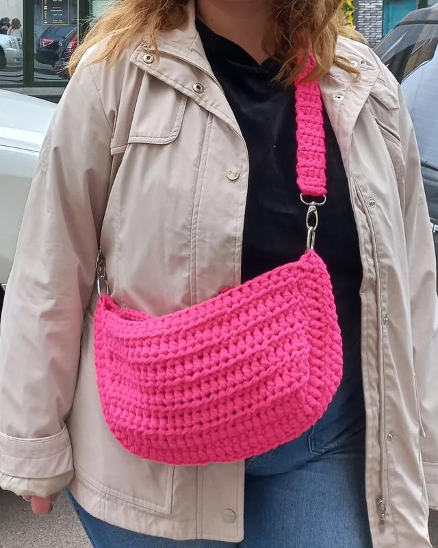 вязаная сумка в красивом оттенке, который добавил акцент вашему образу