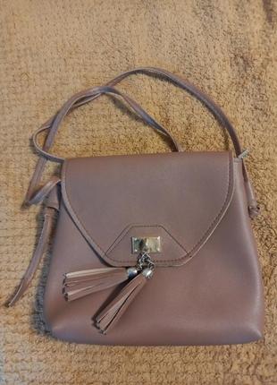 Женская сумочка пудрового цвета. На одно отделение, которое закрывается молнией. Молния рабочая. На ручке в некоторых местах есть небольшие трещины. Ручка идет на завязках( видно на фото), поэтому, при желании, ручку можно заменить на другую. Загалом, стан хороший.