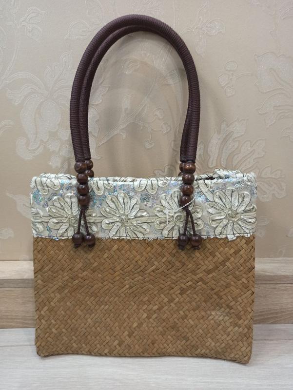 Сумка плетена солома, дерево, текстиль, пайєтки. Нова! З підкладою, застібається. Заміри: ширина 31 см., висота 27, ручки 21.
