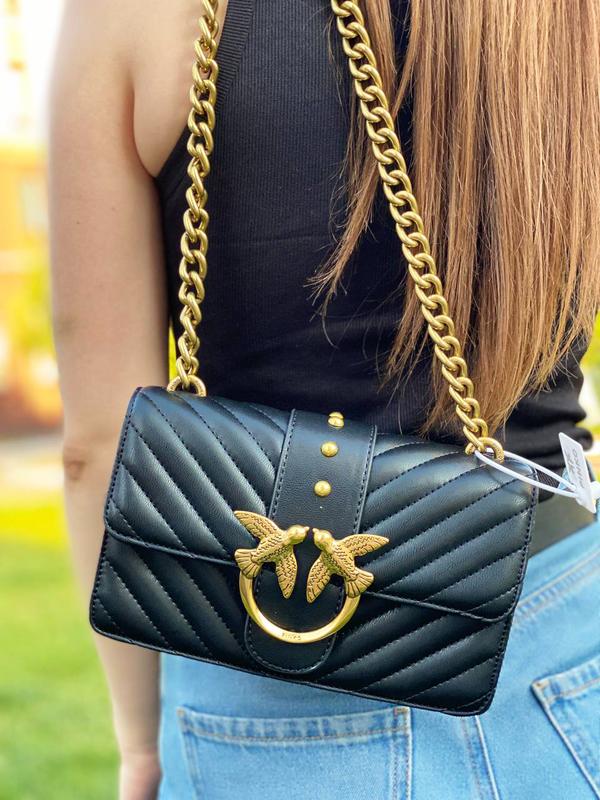 Трендова сумка Pinko one love mini Цвет черный. Материал: кожа веганская. Очень качественная, мягкая, приятная на ощупь. Все лого присутствуют, чип сканируется и выдает на сайт Pinko. Имеет два отделения, подкладка лого. Упаковка: фирменный пакет, пыльнк лого, брендированная коробка. Идеальный вариант для подарка. Отправка в день заказа.