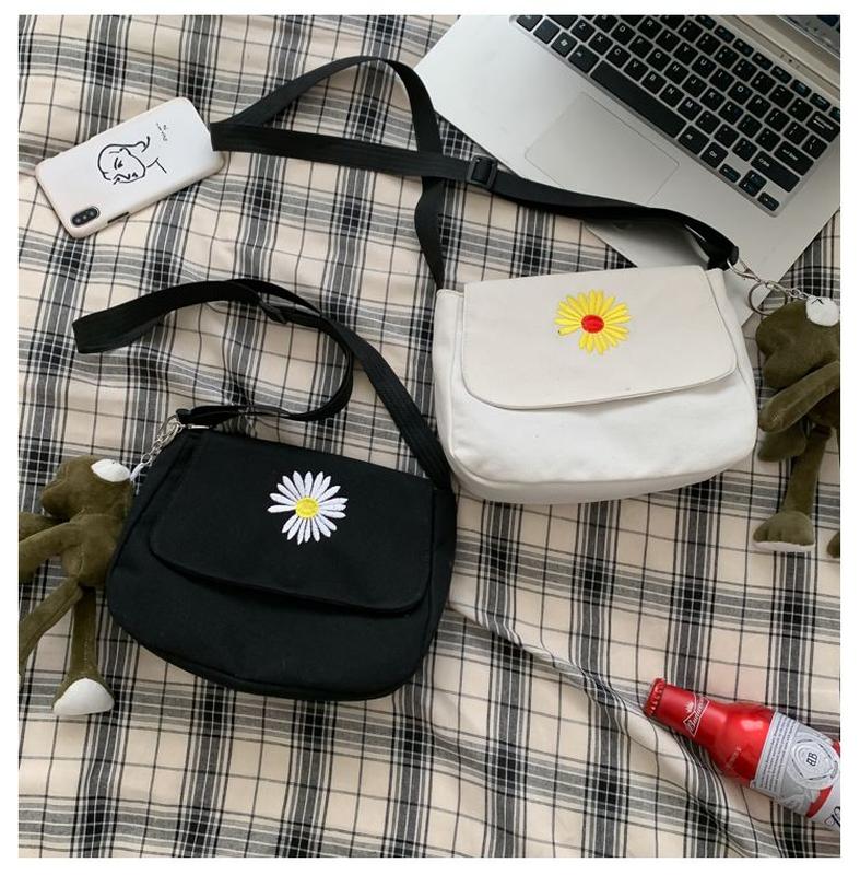 Стильная сумка - оригинальное дополнение к модному образу! Эта сумка имеет два отделения. Модель изготовлена из высококачественного материала.. Украшена принтом Ромашка Длина ремешка регулируется. Размер: высота 18 см, ширина 24, ширина дна 6 см Материал: хлопок, полиэстер. Остались сумки белого цвета. Внутри сумки есть подкладка.