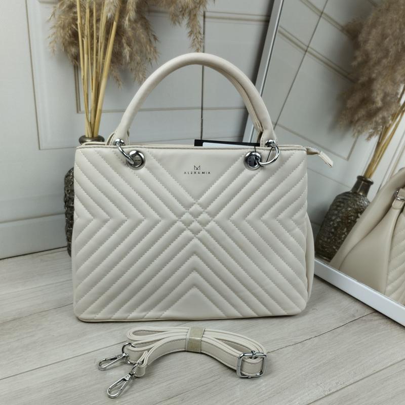 Очень стильная сумочка ♥️ Код: Д596 Цена 960 грн ✅ Материал: эко кожа премиум качества 🔥 Подкладка -плотная ткань Размер: ширина внизу сумки 31см, высота 23 см, дно 12 см. Высота ручек 13 см. Длина ремня регулируется до 112 см. Сумка закрывается на молнию, внутри три отделения, открытый карман и потайной карман на молнии. На обратной стороне карман на молнии. Сумочка красиво продолжается форму