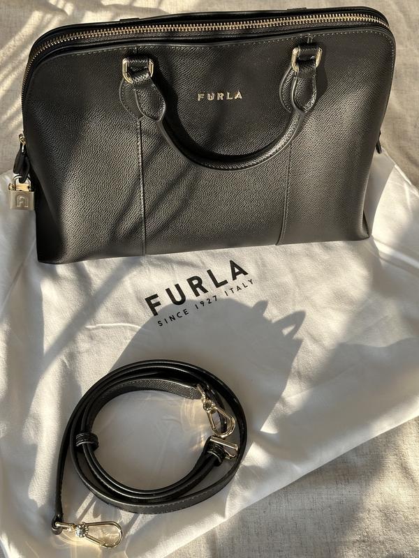 Сумка FURLA VITTORIA Dome M 100% ОРИГІНАЛ. Нова. Материал: натуральная телячья кожа Andromeda Данная модель предназначена для ношения на плече или как кроссбоди благодаря регулируемому и съемному кожаному плечевому ремешку. Мини-замок с логотипом сбоку и оцинкованный логотип Furla спереди. - Двойная верхняя ручка из кожи - Два внутренних боковых отделения с магнитной застежкой - Одно большое центральное внутреннее отделение на молнии - Один внутренний карман на молнии - Верхняя застежка на молнию - Оцинкованный светло-золотое покрытие Размеры 31,0 x 24,0x 11,0 (Ш x В x Г) При наложенном плате - прихожей! Только продажа! Обмен не интересует!