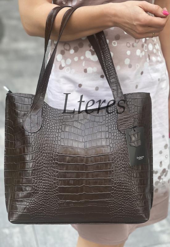 Стильна шкіряна сумка на плече, кольори в асортименті. Розміри: 31(низ)/36(верх) x 13 x 30 Зовнішні кишені: 1 на блискавці з тильної сторони сумки. Внутрішні відділення: 1 основне відділення, 2 відкритих кишені для дрібниць, кишеня-перегородка на блискавці, врізна кишеня на блискавці. Матеріал: Натуральна шкіра під крокодила. Довжина ручок 55см. Кольори: темно-червона, чорна, коричнева. Оплата на р/р Приватбанка. Пересилання Новою поштою (платіж з післяплатою по передплаті 150грн).