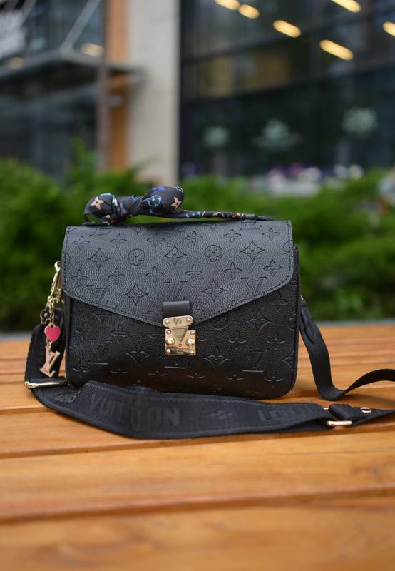 Louis Vuitton Pochette Metis New Black ✅Арт : 41 📐 Розмір: 23 х 17 х 7 см 🧵 Матеріал: Еко Шкіра 🔎 Опис: Сумка виготовлена з еко-шкіри з фірмовою канвою. Усередині два відділення (одне велике, інше поменше), також є маленька кишенька. Ручка у сумки має різнокольорову хустинку. Підкладка всередині сумки з оксамитового текстилю, приємного на дотик. У комплекті є також вузький ремінець на карабінах. Комплектується в брендовану коробку та кольоровий папір