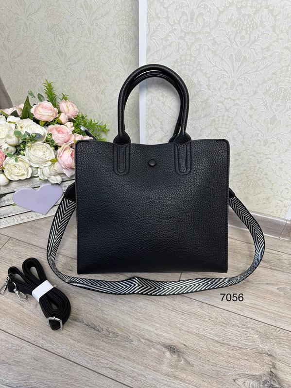 🔥Класична сумочка на кожен день. ✅Еко.Шкіра. ✂️Ширина 29 см.,висота 27 см.,дно 10 см. ✔️Два ремінця : -текстильний 100см. - довгий ремінець 130 см. ✔️Два відділення на магнітах,одне відділення на блискавці. ✔️Форма: каркас,тримає форму. 🟡7056
