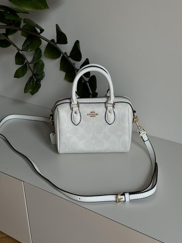 Арт: 99497 <unk> 3300 грн <unk> Размер: 17 x 12 x 10 см <unk> Материал: Кожа Сумка небольшого размера, выполнена из гладкой кожи с фирменной канвой. Внутри одно отделение, есть отилы для карточек. Подкладка внутри из качественного плотного текстиля. Фурнитура металлическая и брендированная. Кожаный ремешок на карабинах для ношения через плечо - имеет регулируемую длину. Комплектуется в брендовую коробку и пыльник, также есть буклеты и пакет.