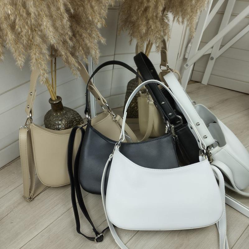 Супер стильная, каркасная, асимметричная сумка-багет 🔥🔥🔥 Код Д184 Материал: гладкая Экокожа премиум качества 🔥 Размер: ширина по дну - 28 см, высота - 14 см, дно - 7 см. Высота ручки 25 см. Длина плечевого ремня регулируется до 115 см. Особенности: Одно отделение, плотная подкладка, карман на молнии