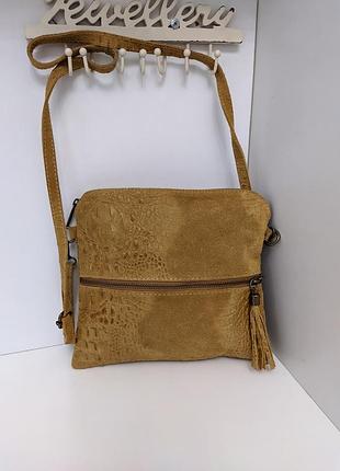 Сумка замшева на плече кросс-боді