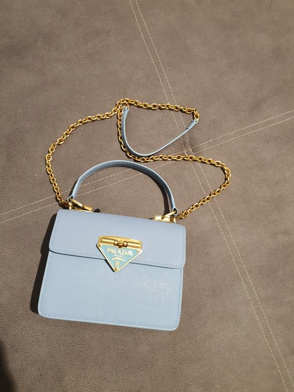 Маленькая сумочка стиля Prada,голубого цвета,,еет маленькая ручка и дверная ручка которая снимается. Натуральная кожа ( сафьяновая) Размер 19×15×7